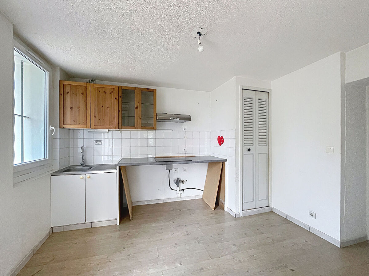 Un haut de villa de type 3 situé au 1er étage composé : d'une cuisine, d'un séjour, d'un dégagement, de 2 chambres, d'une salle d'eau avec WC et d'une terrasse. Pas d'emplacement de parking