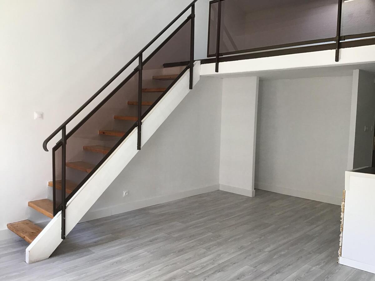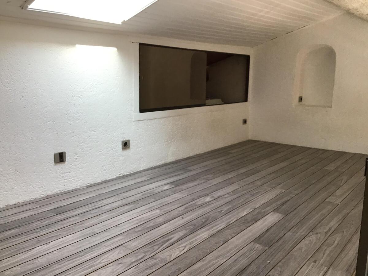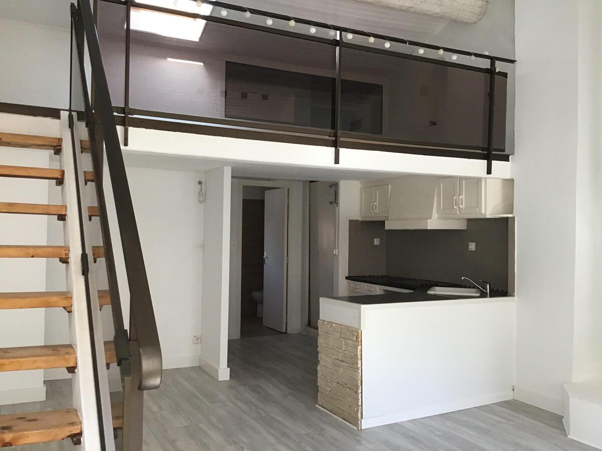 1 pièce principale avec insert, 1 mezzanine, 1 coin cuisine, 1 salle d'eau avec WC, Climatisation réversible. Pas de stationnement
