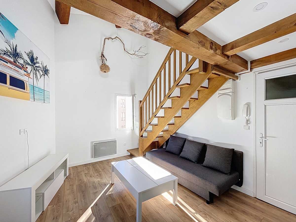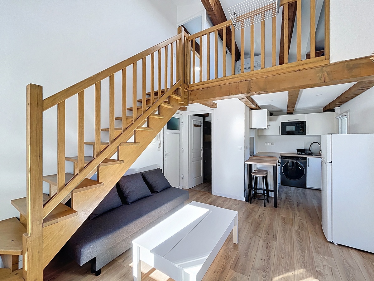 L'agence Arnaud Gestion vous propose un appartement T2 meublé situé au 2e et dernier étage, il se compose au premier niveau d'un séjour ouvert avec cuisine moderne et entièrement équipée, d'une salle d'eau avec WC. A l'étage vous trouverez une mezzanine et une chambre avec rangements.