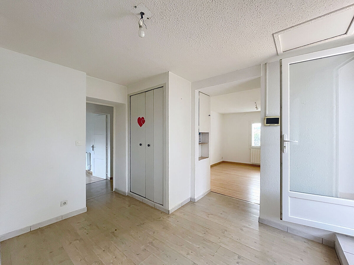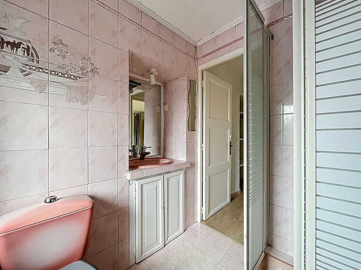 Un haut de villa de type 3 situé au 1er étage composé : d'une cuisine, d'un séjour, d'un dégagement, de 2 chambres, d'une salle d'eau avec WC et d'une terrasse. Pas d'emplacement de parking